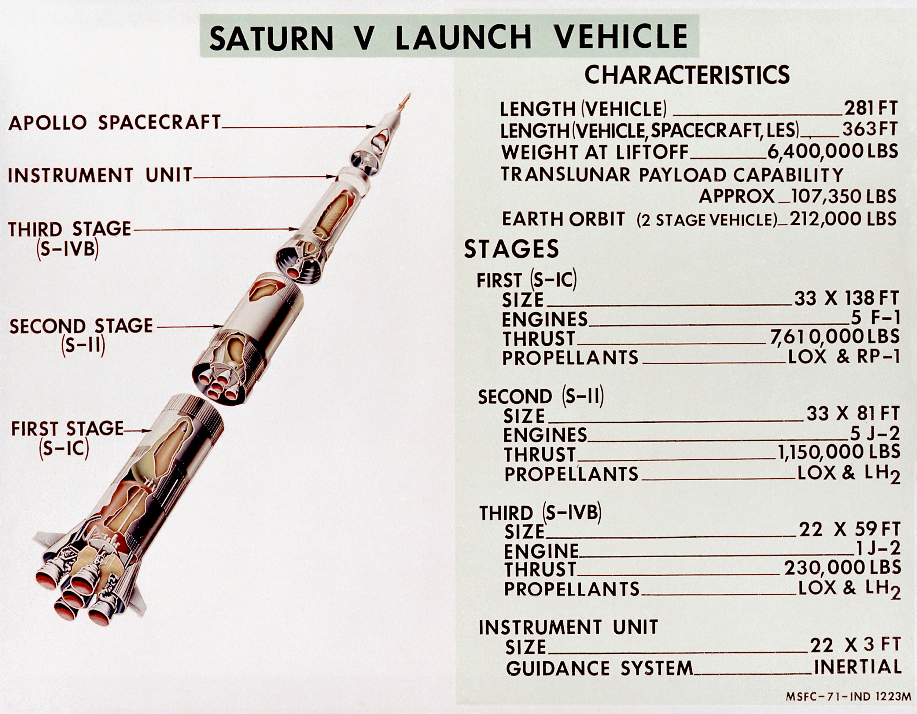 The rocket equation essentially means chemical energy is simply not powerful enough to get us into space on one big rocket. Lifting the heavy mass of engines and propellants and the structure carrying them uses up all those propellants before you get high and fast enough to reach escape velocity. If the bulky mass of the large tank structure and attached heavy engines could somehow progressively shrink and become lighter as propellants were used up, then the rocket could then achieve escape velocity before running out of propellants. And the way to do this is…stack a smaller lighter rocket with smaller lighter engines on top of the big rocket and just separate from the big one and leave all that dead weight behind when it is empty. Because of the low energy of chemical propellants, the drag of the lower atmosphere, and the depth of Earth’s gravity well, typically one rocket, the first stage, must loft and launch another smaller rocket, the second stage, which carries yet a third rocket. This final fractional payload of useful mass then goes high enough and fast enough to keep falling around the planet. Or leave and go to other planets.