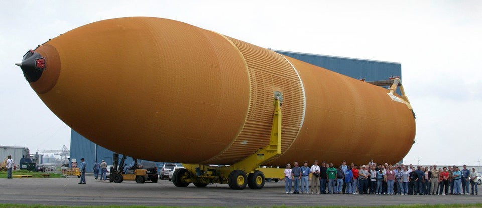 Making a reusable Saturn V first stage, despite it’s size, would not have been as difficult as reusing the second stage. After reusing the first stage, capsule, and escape tower, the next step would have been returning the second stage and landing it for reuse. The second stage would have done at least one orbit, reentered and returned to vertically land at the launch site. We can see the very similar size and shape of the Shuttle external tank and the 21st century shiny starship prototype. The replacement for the North American S-ll second stage would have been a external tank sized stage with heat shield tiles and much smaller wing surfaces like the shiny stacked on top of the S1C.
